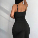 Askılı tasarımı omuzları ön plana çıkarırken, asimetrik etek kesimi modern ve dikkat çekici bir stil yaratır. Vücuda oturan esnek kumaşı sayesinde hem rahat hem de özgüvenli bir kullanım sunar.