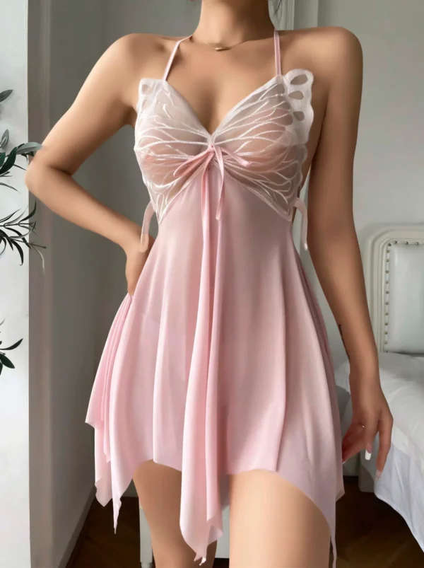Yumuşak ve hafif kumaşı cildinizde nazik bir his bırakırken, uçuşan etek formu hareketli ve estetik bir duruş kazandırır. Günlük kullanımın yanı sıra özel anlarda da tercih edilebilecek bu gecelik, zarafet ve konforu bir arada sunar.