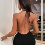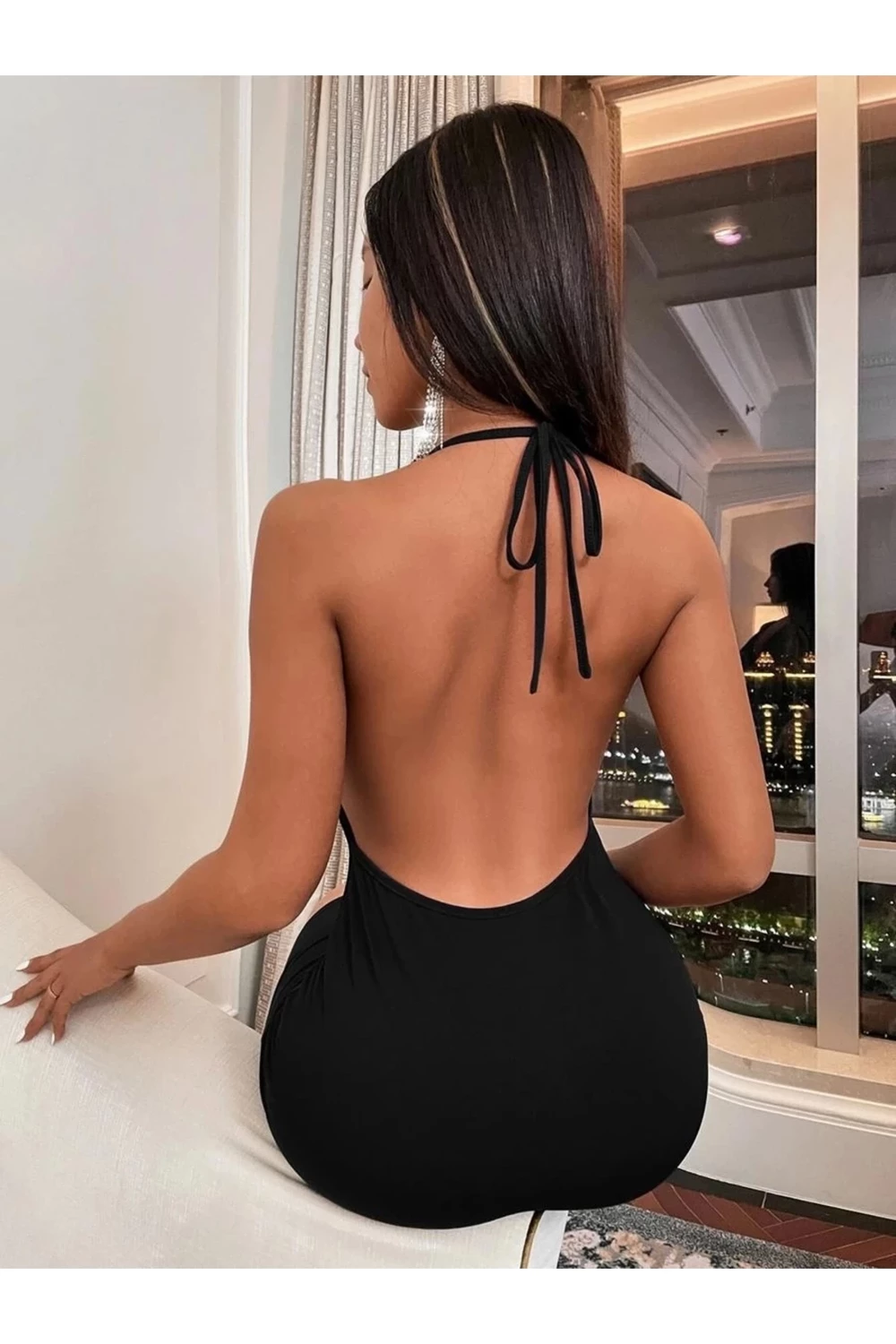 Siyah Sırt Dekolteli Halter Yaka Mini Elbise