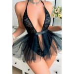 Zarif ve iddialı tasarımıyla öne çıkan bu siyah babydoll gecelik, feminen şıklığı modern detaylarla buluşturur. Dantel işlemeli üst kısmı, derin dekoltesiyle dikkat çekerken vücut hatlarını estetik bir şekilde ön plana çıkarır.