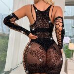 Parıltılı taş detayları ve cesur cut-out tasarımıyla bu mini elbise, tüm dikkatleri üzerine çekmek için tasarlandı. Transparan file dokusu ve vücuda oturan esnek yapısı sayesinde feminen hatlarını kusursuz şekilde ortaya çıkarır.